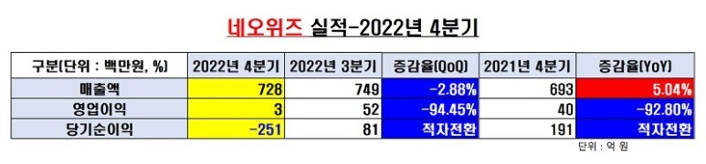 2월 14일 화요일, 네오위즈(공동대표 김승철, 배태근)가 한국채택국제회계기준(K-IFRS)을 적용한 2022년 연간 및 4분기 실적을 발표했다.