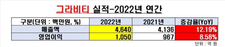2월 14일 그라비티가 2022년 연간 실적을 공개했다.
