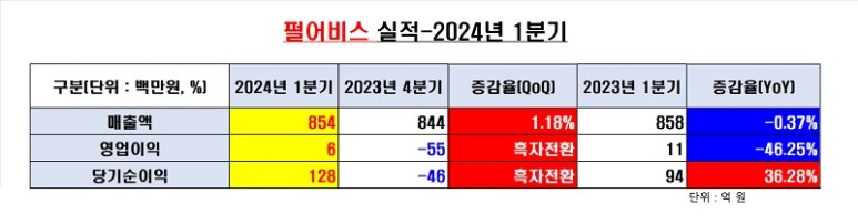 연결 기준 1분기 매출 854억원, 영업이익 6억원, 당기순이익 128억이다.