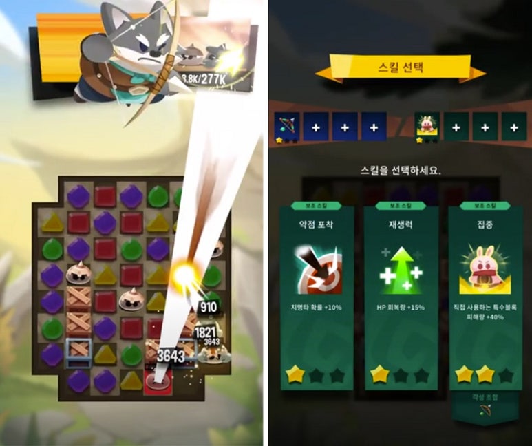 애니팡 매치라이크는 퍼즐에 RPG 요소를 결합했다.