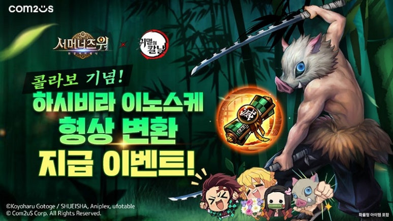 ‘서머너즈 워: 천공의 아레나'에서 애니메이션 ‘귀멸의 칼날’과의 컬래버를 기념, 형상 변환 지급 이벤트를 실시했다.