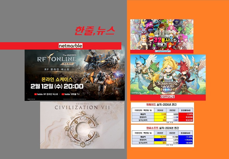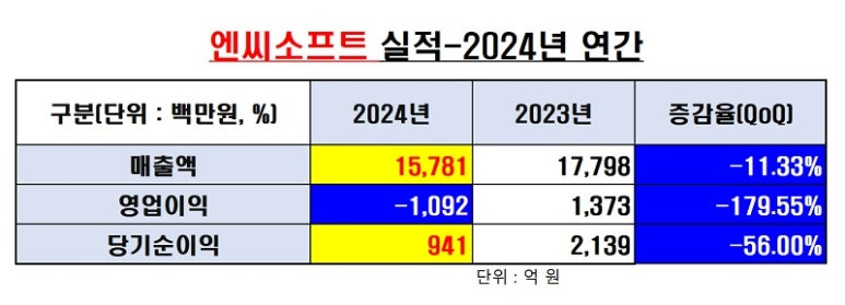 엔씨·위메이드· 네오위즈, 24년 연간 및 4분기 실적 공개