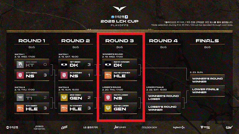 2월 19일(수)부터 23일(일)까지 LCK 아레나에서 2025 LCK컵 플레이오프 마지막 주 차 일정을 공개했다. 디플러스 기아가 한화생명E스포츠와, 젠지가 농심 페드포스와 결승행 티켓을 두고 대결한다.