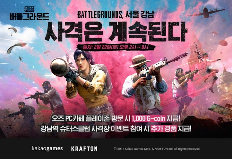 자사가 서비스 중인 ‘배틀그라운드’의 오프라인 PC방 플레이존 이벤트를 2월 22일(토) ‘오즈PC카페 리저브’ 강남역점에서 진행한다.