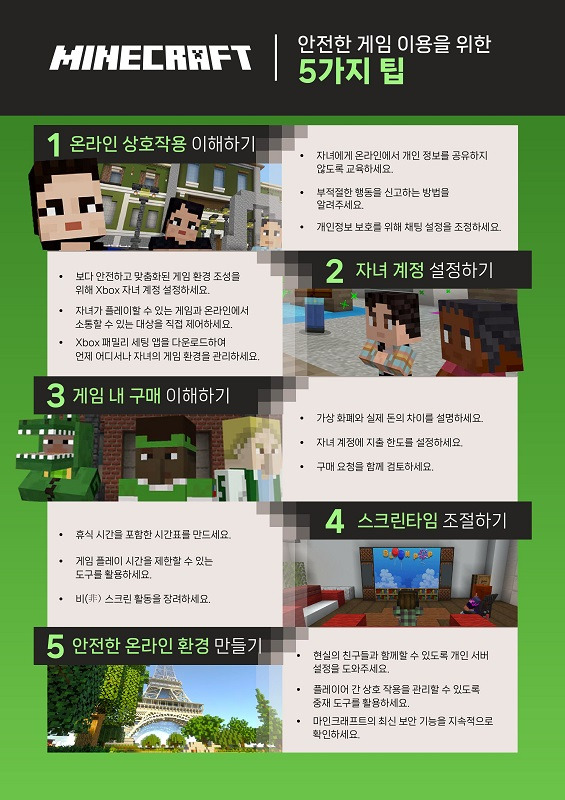 새 학기를 맞아 '마인크래프트' 테마의 ‘안전한 게임 이용을 위한 다섯 가지 팁’이 담긴 인포그래픽을 공개했다