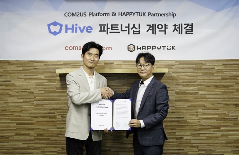 자회사 컴투스플랫폼(대표 최석원)이 해피툭(HappyTuk, 대표 양민영)과 게임 백엔드 서비스(GBaaS) ‘하이브(Hive)’의 사용 계약을 체결했다.