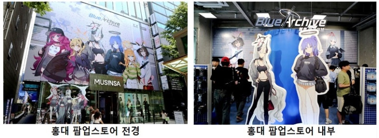 무신사 홍대 스토어와 성수 스퀘어에 마련된 팝업스토어는 판매 공간을 넘어 ‘블루 아카이브’의 세계관까지 경험할 수 있는 공간으로 구성됐다.