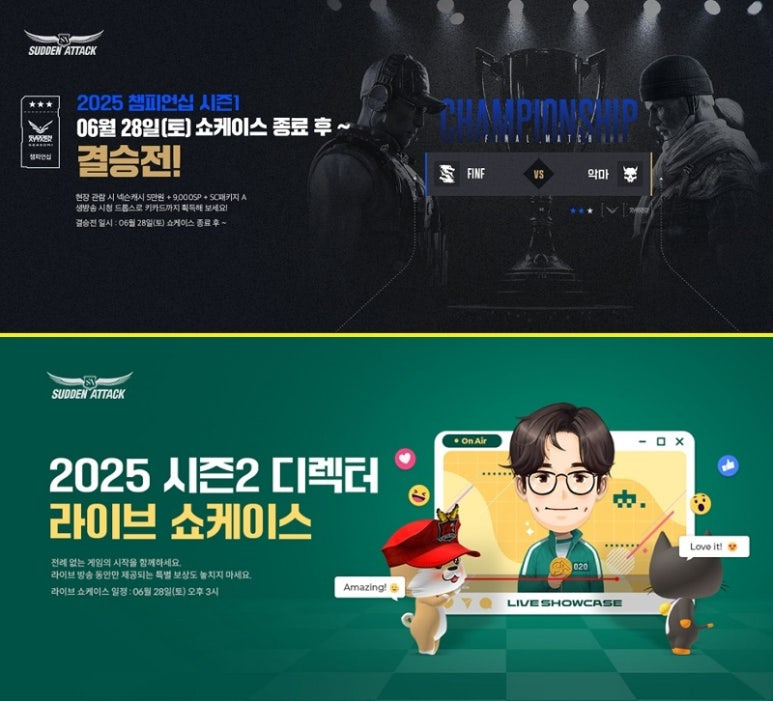 6월 28일(토), 인기 온라인 FPS 게임 ‘서든어택’ 공식 e스포츠 대회 ‘2025 서든어택 챔피언십 시즌1’의 결승전 및 디렉터 라이브 쇼케이스를 진행한다. 이에 앞서 김태현 디렉터의 라이브 쇼케이스를 진행한다.