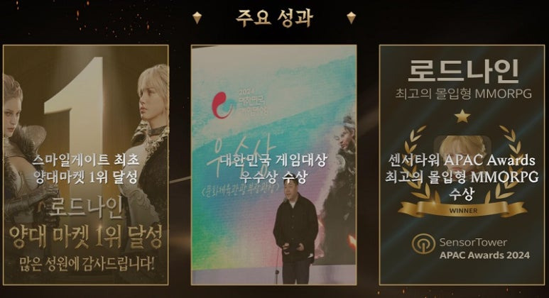 센서타워에서 발표한 APAC 어워드 2024에서는 최고 몰입형 MMORPG로 선정됐다.