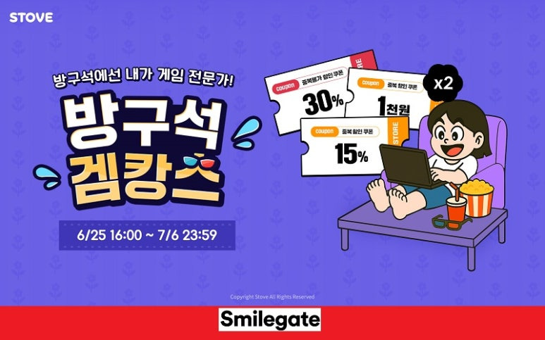 글로벌 소셜 플랫폼 스토브가 7월 6일(일)까지 ‘방구석 겜캉스’ 프로모션을 진행한다.