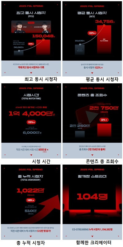 축구 온라인 게임 ‘FC 온라인’의 국내 최상위 정규리그 ‘2025 FC 온라인 슈퍼 챔피언스 리그(FSL) 스프링’이 주요 지표를 공개했다. 누적 시청자가 1022만 명이고 콘텐츠는 2750만 뷰를 기록했다.
