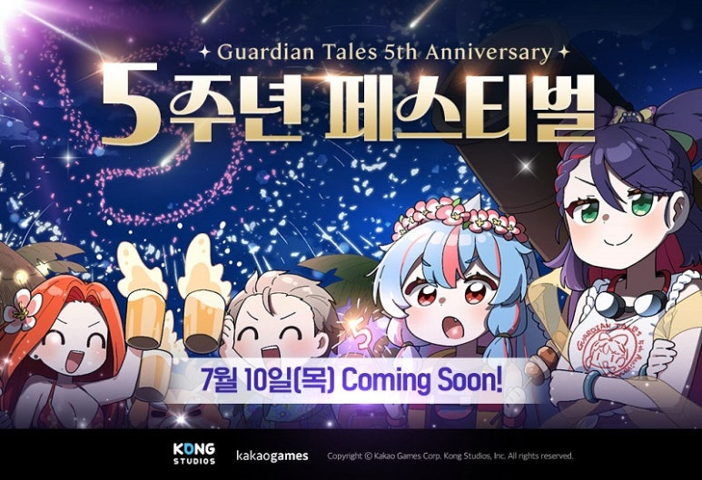7월 10일 모바일 RPG ‘가디언 테일즈’ 서비스 5주년 업데이트를 앞두고 사전등록에 돌입했다.