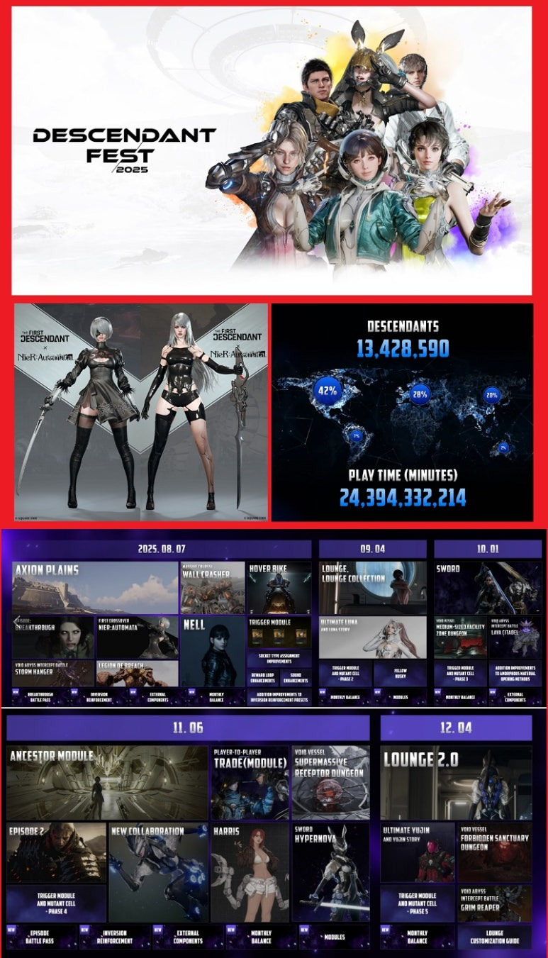 글로벌 흥행 슈팅 게임 '퍼스트 디센던트' 출시 1주년 기념 온라인 쇼케이스(디센던트 페스트2025)를 개최, 그동안의 주요 성과와 8월 7일 추가예정인 '돌파' 업데이트 및 하반기 신규 콘텐츠를 소개했다. 기념 이벤트에도 나섰다.