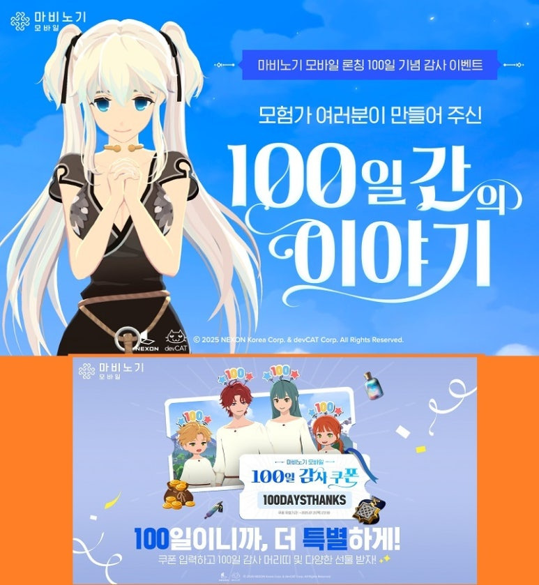 자회사 데브캣(대표 김동건)에서 개발한 MMORPG ‘마비노기 모바일’에서 정식 출시 100일 기념, 이벤트를 시작했고 주요 데이터를 담은 영상도 공개했다.