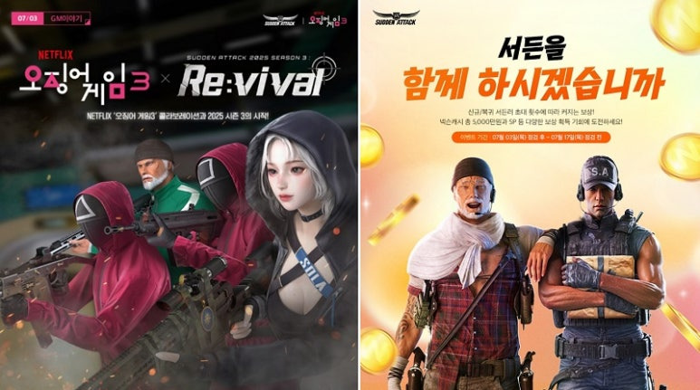 인기 온라인 FPS 게임 ‘서든어택’에 넷플릭스 시리즈 '오징어 게임 시즌3'와의 컬래버레이션 콘텐츠를 업데이트하고 시즌3 '리:바이벌(Re:vival)'을 9월 25일까지 진행한다.