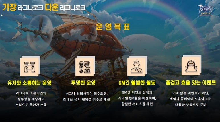앞서 말씀드린 내용처럼 오리진은 게임 본연의 재미를 보여드릴 수 있도록 노력하고 있습니다. 다만, 라그나로크M에 비해 유저 간의 경쟁 요소가 적어서 아쉬워하시는 이용자분들도 계실 거 같은데요. 해당 부분은 론칭 후 의견 수렴을 통해 지속적인 만들어갈 예정입니다.