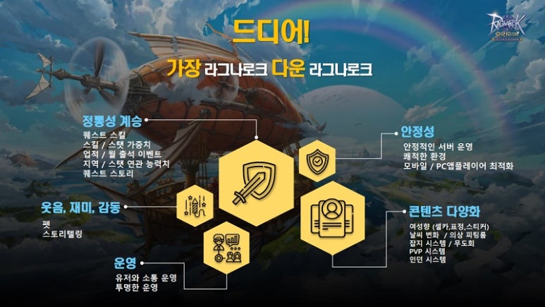 일단 라그나로크 오리진은 기획 초기부터 원작의 정통성을 재현하기 위해 많은 노력을 했습니다. 단순히 그래픽 뿐만이 아니라 세계관이나 배경, 퀘스트 라인, 스킬이나 시스템 등 다양한 부분에서 원작의 장점을 구현하고자 했습니다.