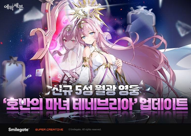 슈퍼크리에이티브에서 개발한 글로벌 ‘에픽세븐’에 신규 월광 영웅 ‘호반의 마녀 테네브리아’를 업데이트 했다.