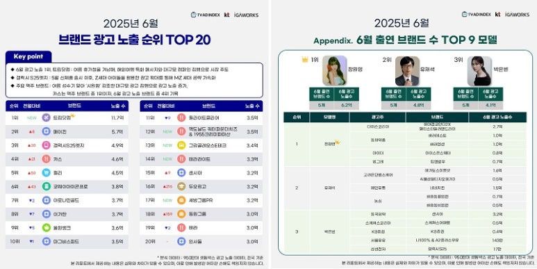 자사 TV 광고 분석 솔루션을 활용해 작성한 TV 애드 인덱스 '2025년 6월 TV 광고 노출 순위' 리포트를 공개했다.