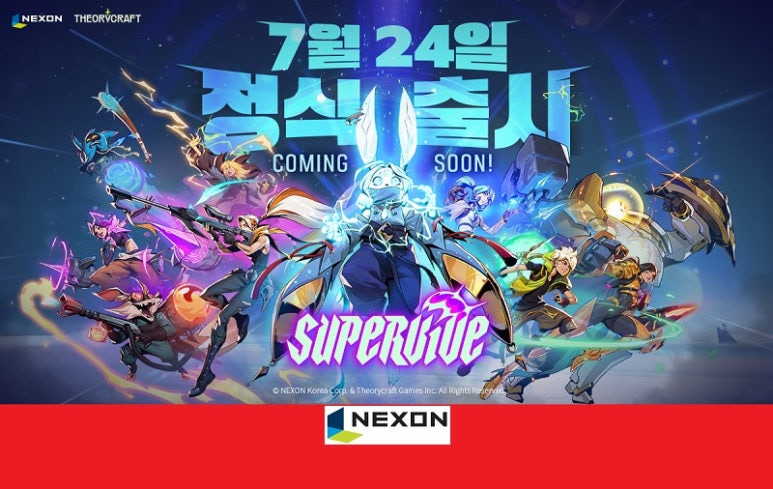 넥슨은 신작 MOBA '슈퍼바이브' 티저 페이지를 오픈했다. 이 게임은 띠어리크래프트 게임즈에서 개발 중이며 7월 24일(목) 정식 출시 예정이다.