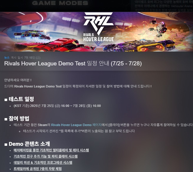 이번에 공개되는 라이벌즈 호버 리그의 첫 체험판은 한국 시각으로