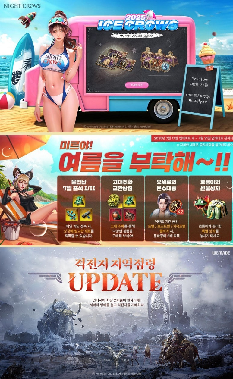 대표 MMORPG 3종(미르4, 나이트 크로우, 레전드 오브 이미르) 등에서 여름맞이 특별 이벤트를 시작했다.