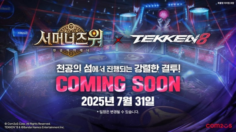 글로벌 장수 흥행 RPG ‘서머너즈 워: 천공의 아레나’에서 글로벌 대작 액션게임 ‘TEKKEN 8’과 컬래버레이션을 예고하고 사전 예약에 돌입했다. 7월 31일까지며 오는 8월 9일과 10일 익선동에서 오프라인행사 '서머 오락실'을 운영한다.