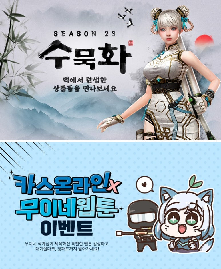 온라인 FPS게임 ‘카운터-스트라이크 온라인(카스온라인)’에 다양한 임무를 수행하고 각종 아이템 보상을 획득할 수 있는 신규 콘텐츠 ‘의뢰임무’ 업데이트와 함께 '무이네 웹툰' 컬래버 콘텐츠를 추가 및 시즌23:수묵화도 시작했다.