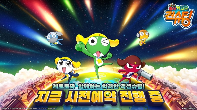 ‘케로로 건슈팅’의 사전예약에 나섰다. 인기 애니메이션 ‘개구리 중사 케로로’ IP를 활용한 TPS(3인칭) 액션슈팅 게임이다.