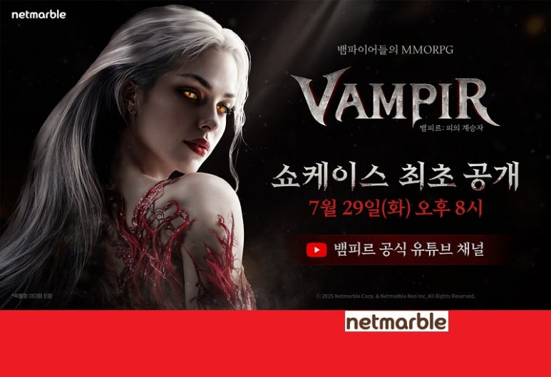 뱀파이어 컨셉 신규 MMORPG '뱀피르' 온라인 쇼케이스를 7월 28일(화) 개최하고 이를 예고한 티저 영상을 공개했다.