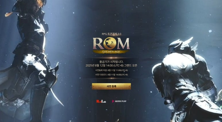 8월 12일(화) 블록체인 게임 플랫폼 ‘위믹스 플레이’에 온보딩되는 웹3 MMORPG '롬: 골든 에이지'가 사전예약 수 400만을 돌파했다고 밝혔다. 8월 11일 사전다운로드를 시작한다고 덧붙였다.