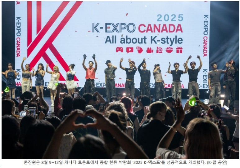 한국콘텐츠진흥원와 함께 8월 9일부터 12일까지 캐나다 토론토 델타호텔과 메리디언홀에서 ‘2025 K-엑스포 : 올 어바웃 케이 스타일(All about K-style)’을 성황리에 개최했다고 전했다.