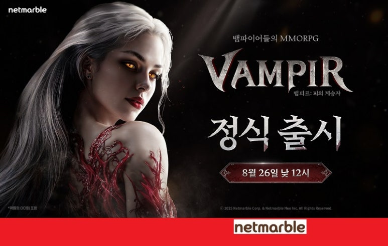 8월 20일(수) 넷마블은 '뱀피르'를 오는 8월 26일 출시한다고 밝혔다. 이 게임은 넷마블네오에서 개발 중인 뱀파이어 소재 MMORPG다.