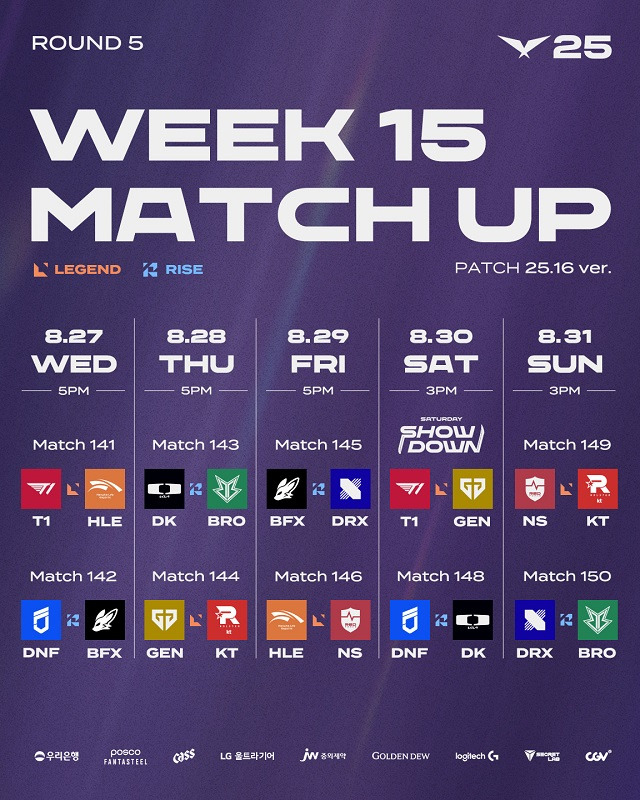 8월 26일(화) 리그 오브 레전드 챔피언스 코리아(대표 오상헌, 이하 'LCK')가 2025 LCK 정규 시즌 5라운드 2주 차 일정을 공개했다.