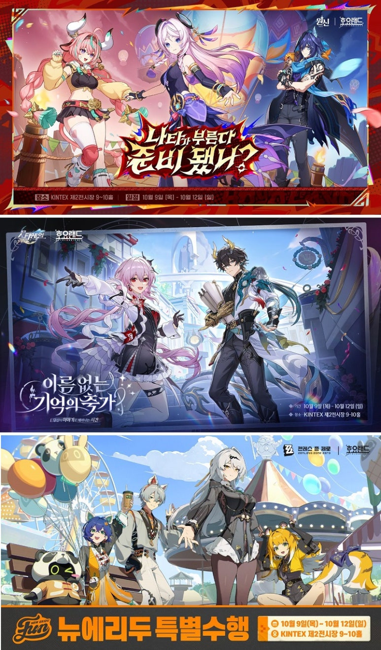 10월 9일부터 12일까지 일산 킨텍스에서 단독 오프라인 행사 ‘호요랜드2025(HoYoLAND2025)’를 개최한다. 붕괴3rd, 원신, 미해결사건부, 붕괴: 스타레일, 젠레스 존 제로 등 호요버스 대표 게임 5종을 전시하고 다채로운 이벤트에 나선다.