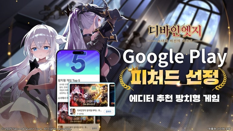 신작 모바일 게임 '디바인엣지: 소녀와 마신의 이야기'가 구글 플레이 스토어 메인 피처드(Featured) '에디터 추천 5 방치형 게임'으로 선정됐다고 밝혔다.