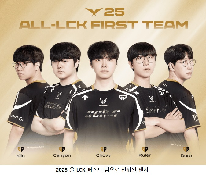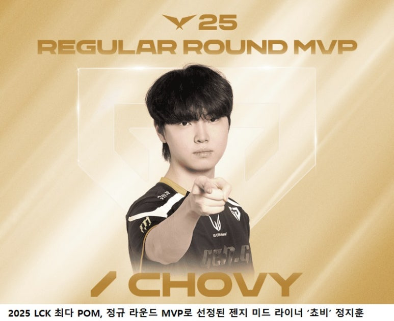2025 LCK 정규 시즌 수상자들을 발표했다. 올 LCK 팀(젠지), 정규 라운드 MVP(쵸비 정지훈), 올해의 감독(김정수 젠지), 루키 오브 더 이어(BFX 디아블 남대근) 등이다.