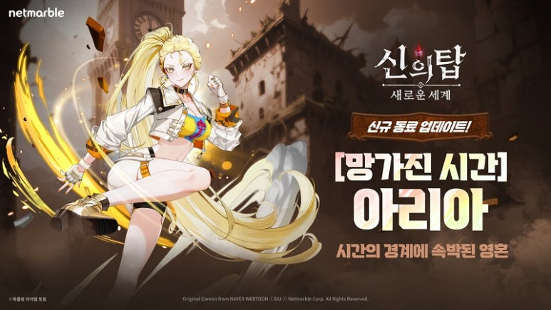 수집형 애니메이션 RPG '신의 탑: 새로운 세계'에 신규 SSR+등급 동료 '[망가진 시간] 아리아'와 새로운 성장 시스템 '부유선' 등을 업데이트하고 기념 이벤트에 나섰다.