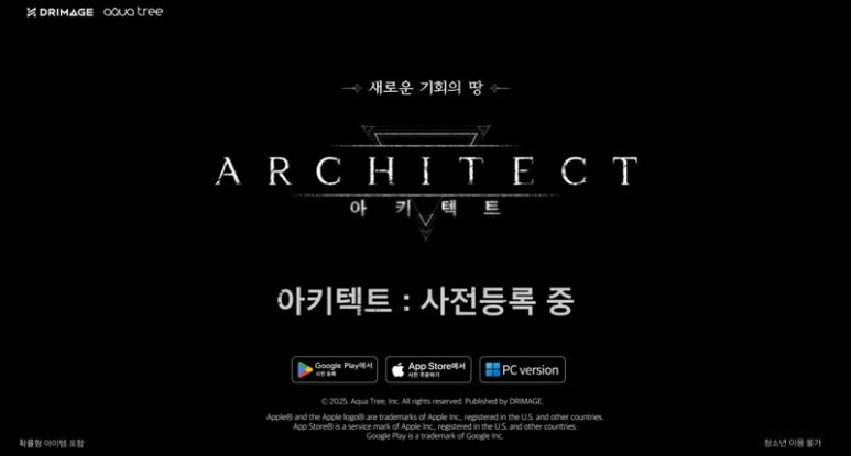 드림에이지는 현재 아키텍트 사전예약을 공식 사전등록 페이지와 구글 플레이스토어, 애플 앱스토어에서 진행 중이다.