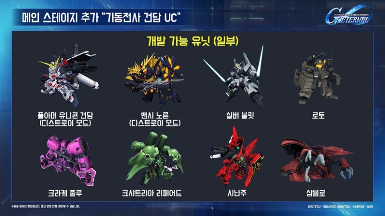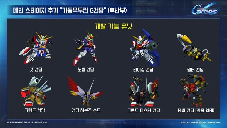 먼저 반다이 남코 엔터테인먼트는 메인 스테이지에 '기동전사 건담UC'와 '기동무투전 G건담 후반부'를 추가될 예정이다.