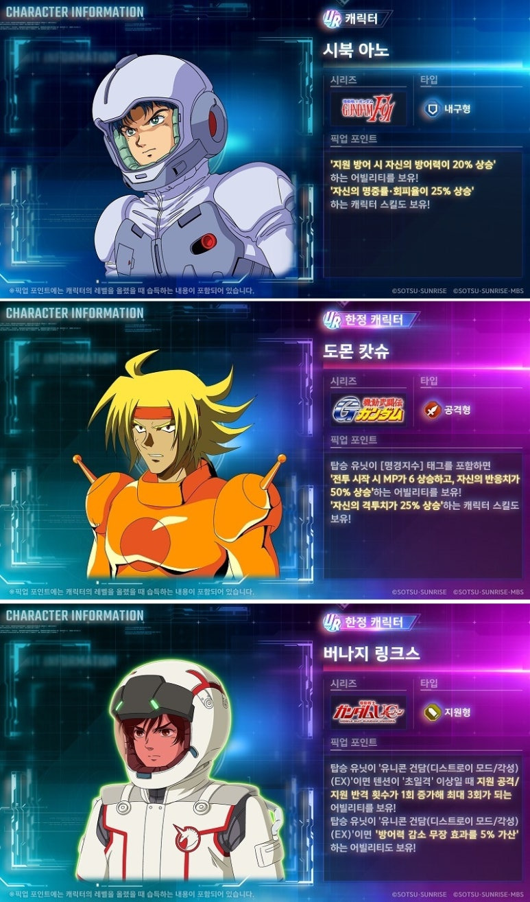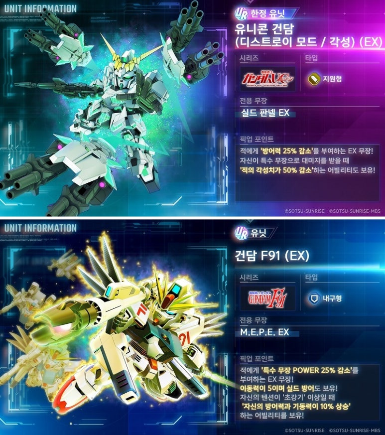이와 함께 기간 한정 UR 유닛 픽업 뽑기에 유니콘 건담(디스트로이 모드/각성)(EX), UR 버나지 링크스, UR 갓 건담(EX), UR 도몬 캇슈 등을 추가한다.
