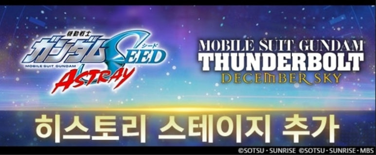 히스토리 스테이지 제1탄에서는 기동전사 건담 'SEED ASTRAY'와 '썬더볼트 DECEMBER SKY' 등이 추가됐다.