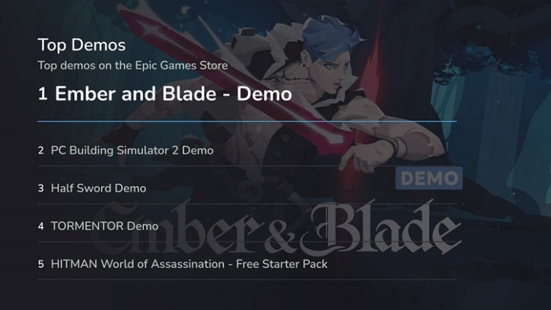 ‘엠버 앤 블레이드’는 스토어 입점과 함께 에픽게임즈 스토어 Top Demos 부문에서 1위에 자리했다.