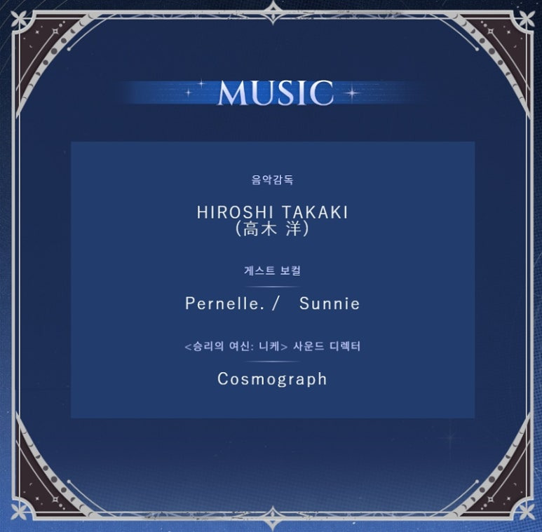 여기에 지난 1회와 마찬가지로, ‘승리의 여신: 니케’의 주종현(Cosmograph) 사운드 디렉터가 참여해 원작 음악의 감성을 한층 깊이 있게 재현한다.
