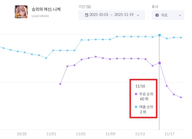 지스타2025를 앞둔 11월 둘째 주, '승리의 여신: 니케'가 미친 역주행을 또 펼쳤다.