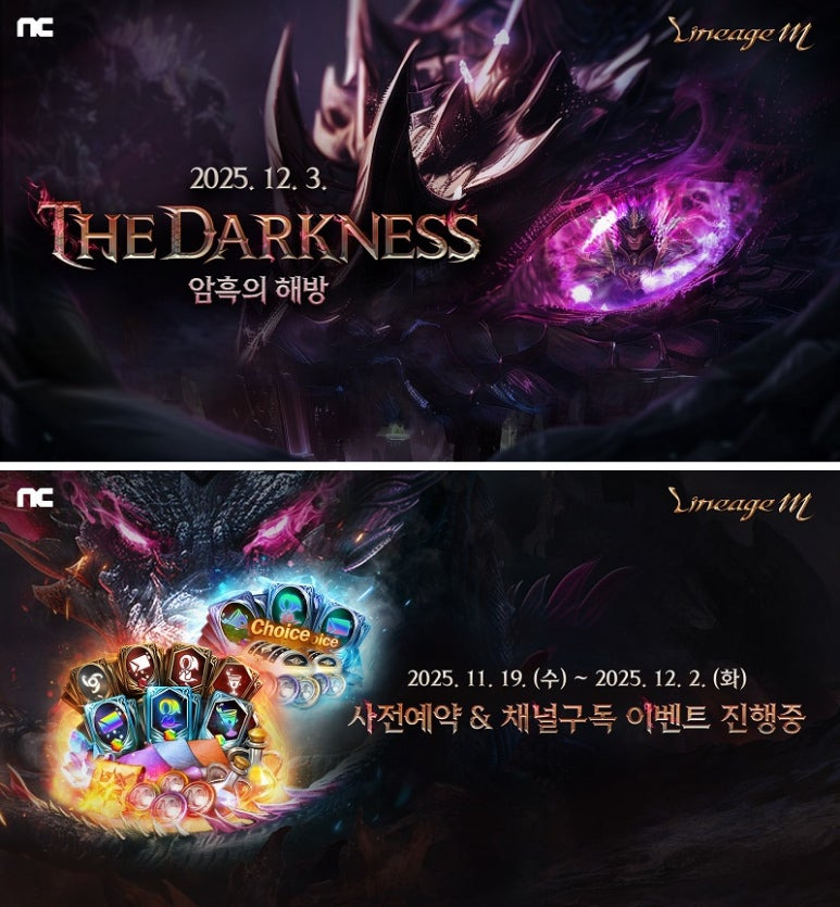 12월 3일 MMORPG ‘리니지M’ ‘THE DARKNESS(더 다크니스)’ 업데이트에 앞서 사전예약 이벤트에 돌입했다.