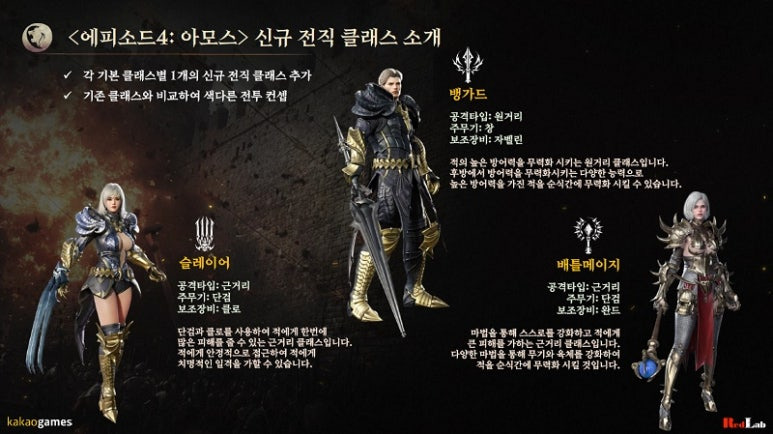 또한 각 클래스 별 1개의 신규 전직 클래스도 ‘에피소드Ⅳ: 아모스’에서 선보일 예정이다.