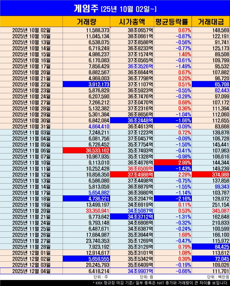 | 고른 상승! 게임주, 거래는 뚝…엔씨 반등 (0) | 2025.12.02 |