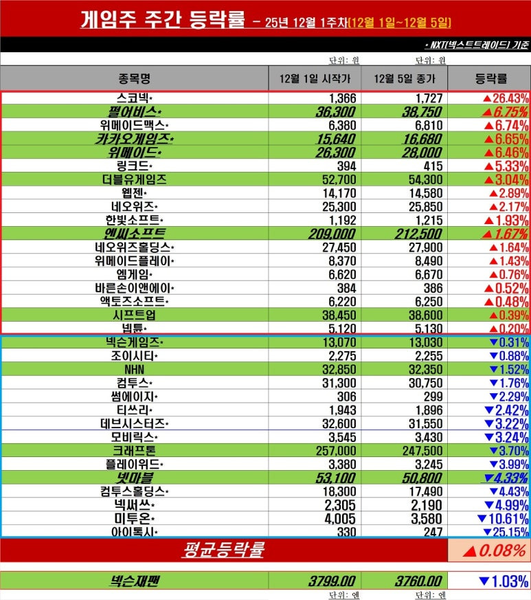 12월 첫 주, 게임주식은 보합권에 머물렀다.