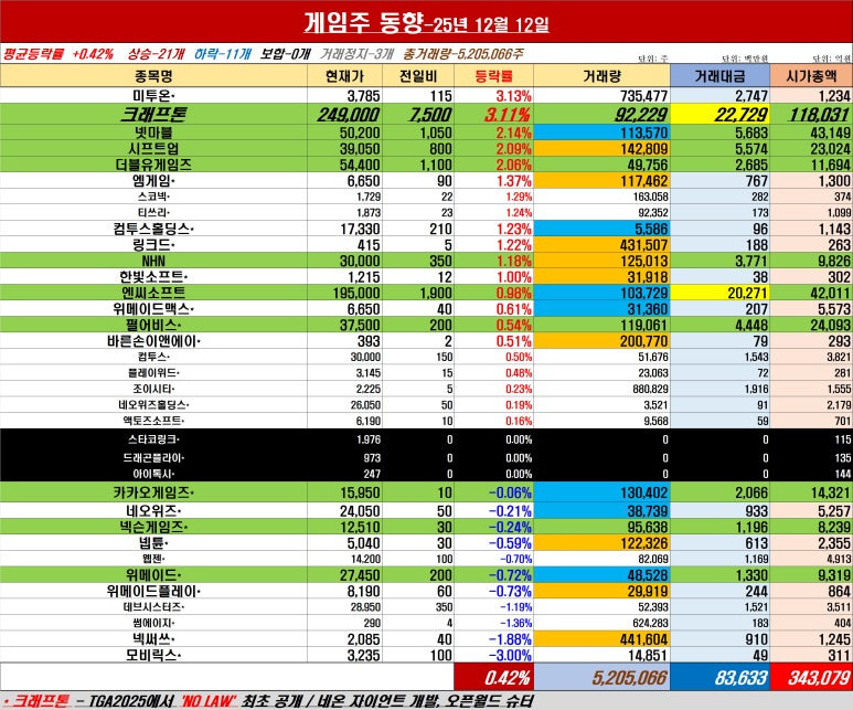 | [주간등락률]끝모를 하락! 게임주, 거래 뚝+34조 붕괴 (0) | 2025.12.13 |